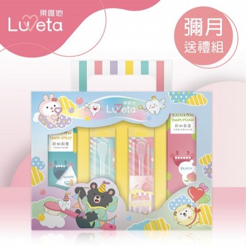 ---- 產品組合項目 ---- 組合內容物/(左至右順序) ◎兒童專用泡沫牙膏 數量:1入 容量:50ml 口味:草莓/葡萄(口味隨機) ... 原價 : 1,260 現場價:NT$990 【Luveta】彌月送禮組 兒童專用泡沫牙膏 / 口腔噴劑 / 寶寶矽膠乳牙刷