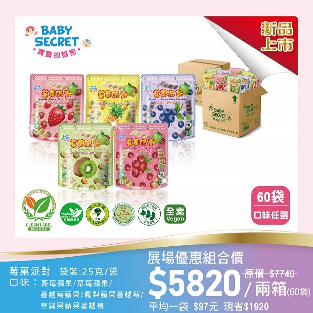 【BABY SECRET 寶寶的秘密 】 莓菓派對有機米餅~60袋(口味任選)單袋淨重:25g