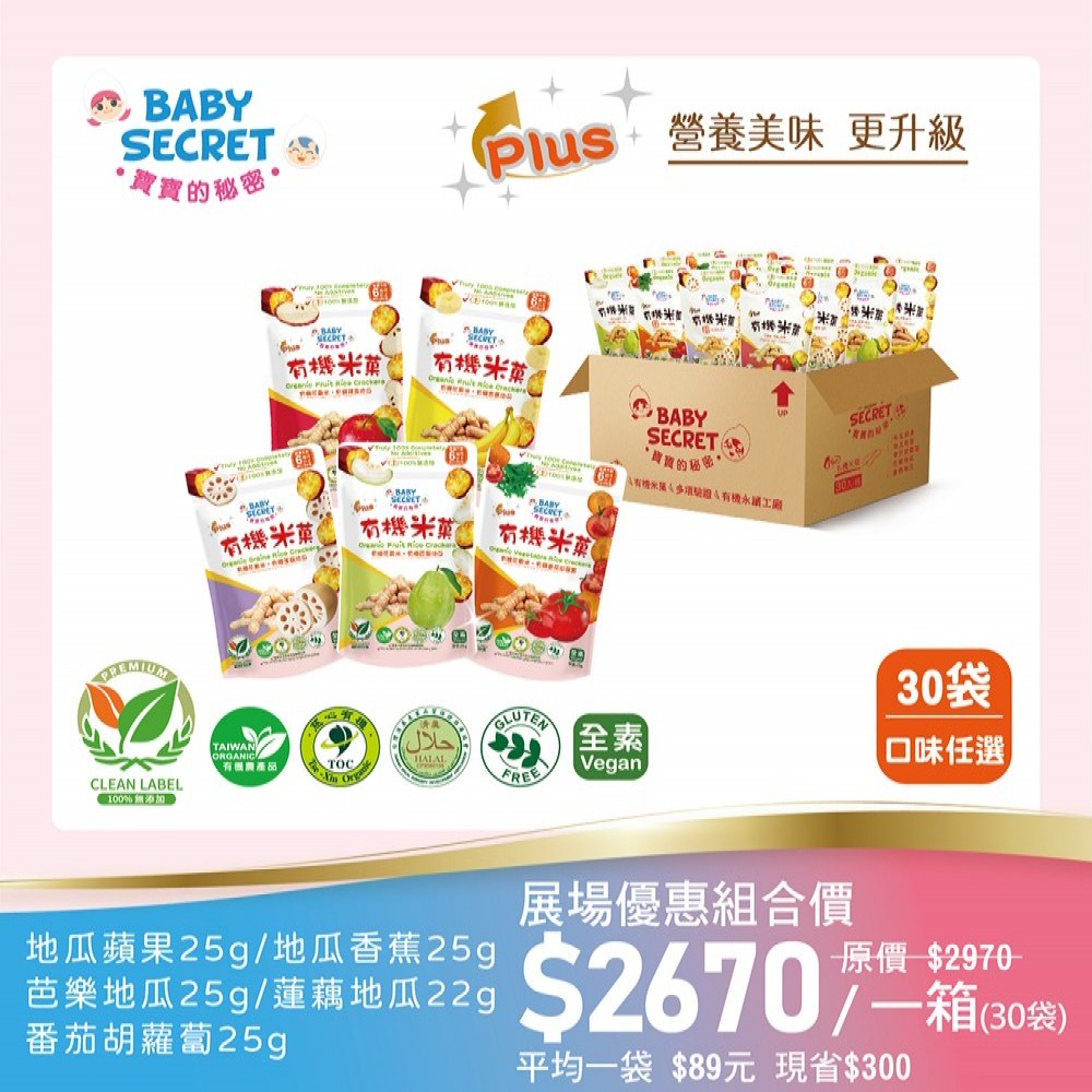 【BABY SECRET 寶寶的秘密 】 PLUS有機米菓~30袋(口味任選)