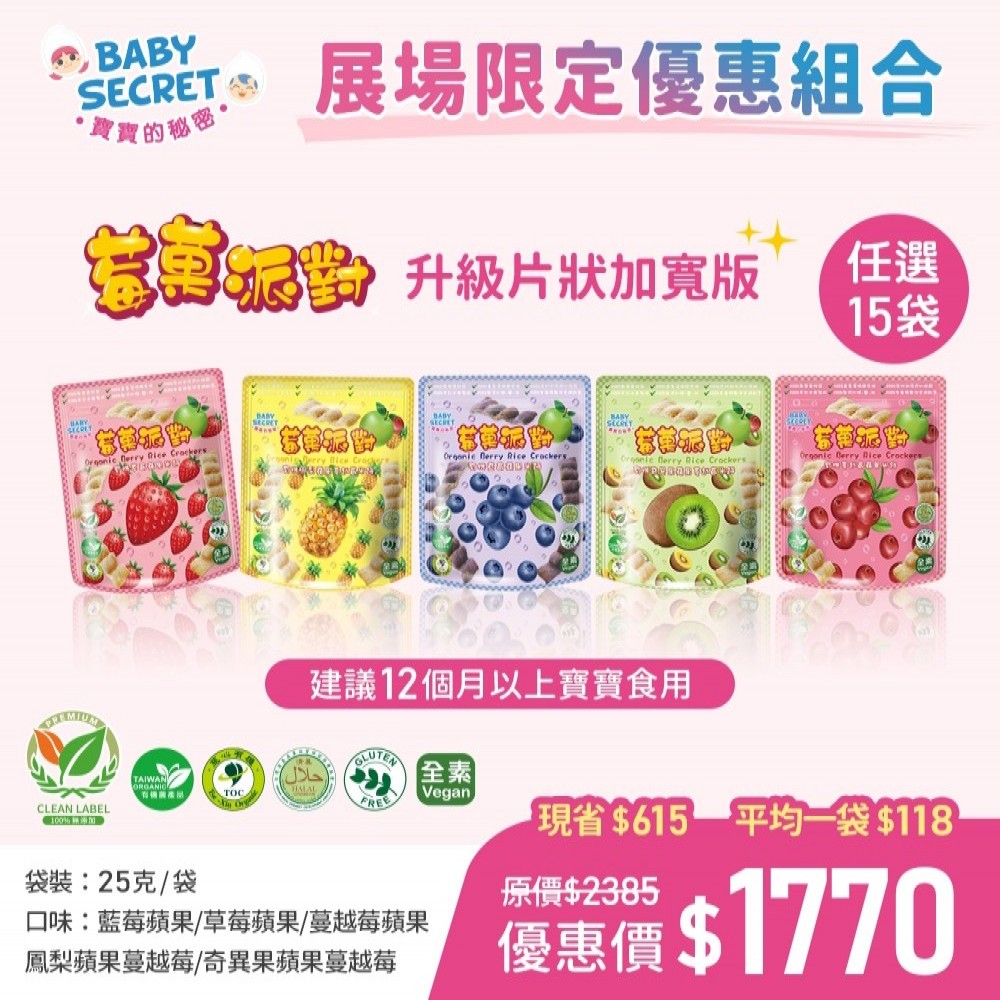 【BABY SECRET 寶寶的秘密 】 莓菓派對有機米餅~15袋